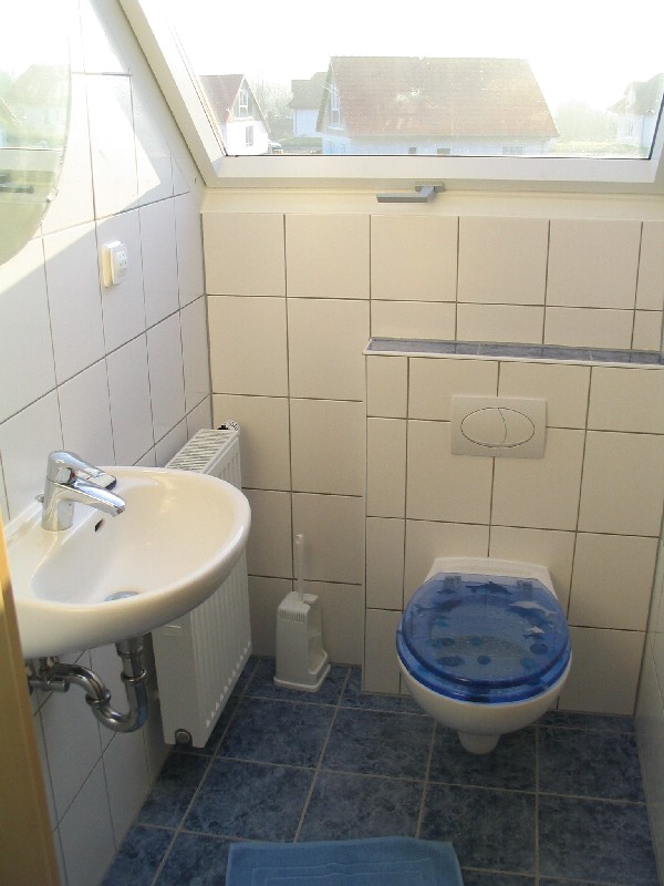 Im Erdgeschoss finden Sie das Duschbad, wo auch eine moderne Waschmaschine und der Wäschetrockner auf Ihre Wäsche warten. Für die Bad-Utensilien aller Familienmitglieder finden Sie reichlich Ablagemöglichkeiten in einem geräumigen Regal.